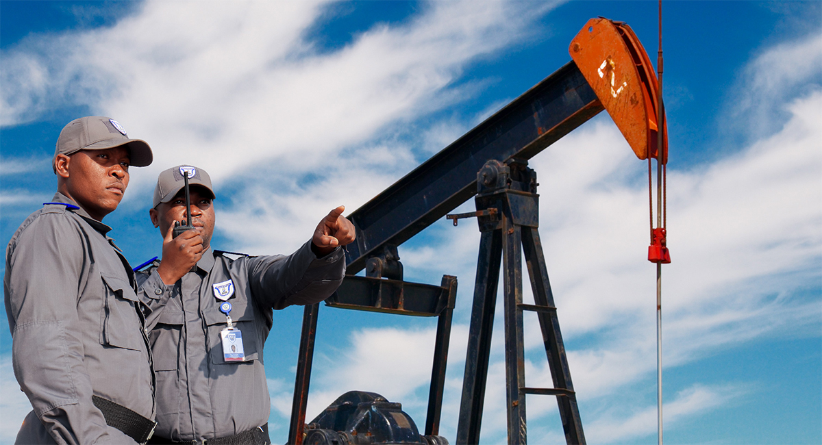 Este serviço consiste no asseguramento de instalações Onshore de petróleo e gás, que contemplam poços de produção, cavalos mecânicos, áreas de armazenamento do crude ou gás, condutas de transporte de crude ou gás, áreas logísticas, armazéns, centros de administração e terminais de descargas no mar.